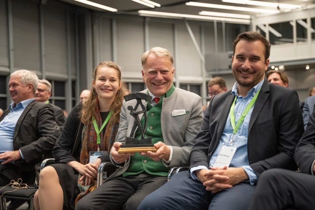 Klaus Pöttinger mit seinen Kindern Susanne und Richard bei der Preisverleihung in Hannover.