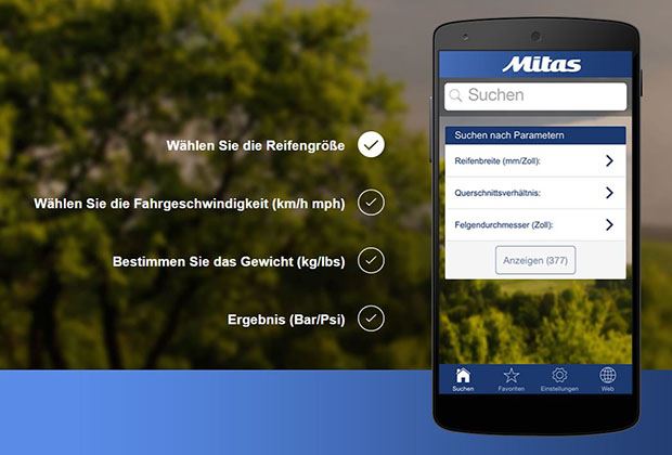 Die neue App von Reifen-Hersteller Mitas hilft Landwirten, den richtigen Luftdruck für ihre Reifen zu ermitteln und die besten Ergebnisse bei der Arbeit zu erzielen. Anwender müssen nur die betreffende Reifengrösse angeben, Geschwindigkeit und Radlast einstellen und der richtige Reifendruck wird auf der Stelle angezeigt.