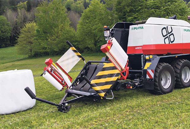 Um runde Ballen zu versiegeln und hygienisch zu lagern, sollten diese im Stehen gelagert werden. Aufgrund dieses Aspekts hat Pöttinger einen Ballenaufsteller entwickelt. Das schreibt der Hersteller in einer Mitteilung.