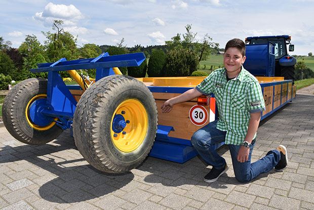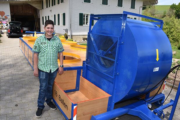Raphael Fischer vom Untergoldbach in Ebersecken, der in Nebikon in die 9. Klasse geht, hat im Rahmen eines Abschlussprojektes seiner Schule einen Belüftungswagen zum Trocknen von Rundballen gebaut. Speziell daran ist: Dank einem hydraulisch Fahrwerk am Heck kann der Wagen angehoben und abgesenkt werden. Dadurch ist er mobil einsetzbar. Das heisst, der Belüftungswagen kann mit dem Traktor von einem Ort zum anderen gefahren werden. Als Belüftungseinheit dient ein 20-PS-Elektro-Ventilator.