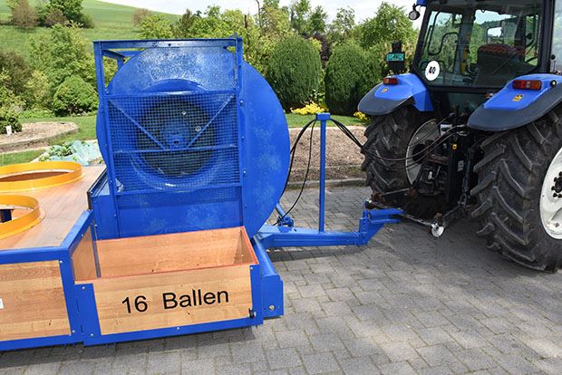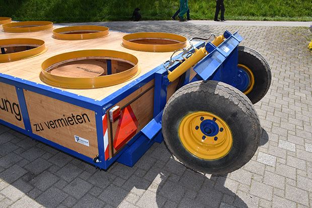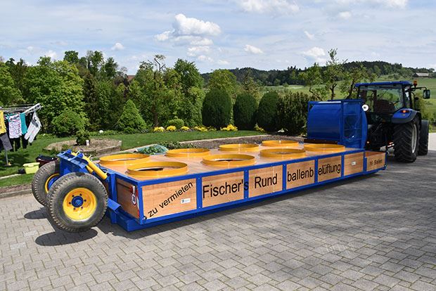 Beeindruckend ist die Grösse. Auf dem 5,5 Meter langen und 2,50 Meter breiten Belüftungskanal sind acht Ringe mit 90 cm Durchmesser platziert. Darauf können 16 Rundballen gleichzeitig getrocknet werden. Möglich ist die zweistöckige Beschickung, also zwei Ballen aufeinandergestellt. Die Länge des Wagens mitsamt dem Fahrwerk misst 9,20 Meter. Vermietet wird der Wagen ab sofort unter dem Namen «Fischer’s Rundballenbelüftung».