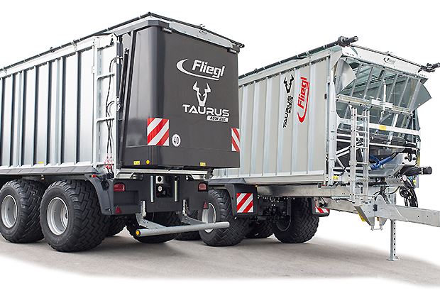 Der Taurus verfüge über eine serienmässig hohe Ausstattung. Diese beinhalte eine durchgehende hydraulisch gefederte Zugeinrichtung mit verstellbarer Anhängehöhe. Ein Garant für besten Lenkeinschlag sei der integrierte schmale Zugholm aus dem Fliegl Schwergutbereich, heisst es weiter.