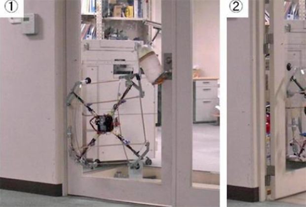 Dem neuen Roboter mit einer Kantenlänge von 60 bis 70 Zentimetern gelang es bei einem Versuch nun, eine Tür eigenständig zu öffnen und hindurch zu fliegen. Hierzu nutzte der Flugroboter Saugnäpfe, mit denen er sich an die Oberfläche einer Tür heftete, die nach aussen aufging.