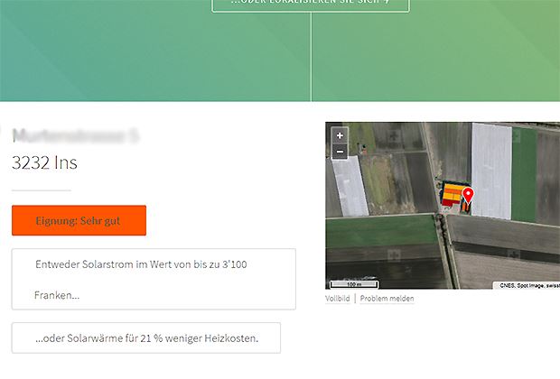 Auf der Website www.sonnendach.ch können Hausbesitzer oder etwa auch Fabrikbesitzer die Adresse ihrer Liegenschaft angeben. Das System gibt anschliessend an, inwiefern sich die Dachfläche bezüglich Sonneneinstrahlung, Ausrichtung, Neigung und Verschattung für eine Solaranlage auf dem Dach eignet.