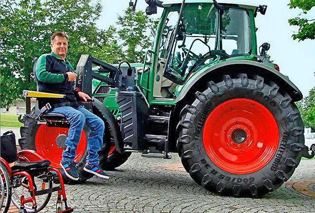 Die Firma Mobitec aus dem deutschen Berkenheim baut für körperlich beeinträchtigte Menschen spezielle Einstiegshilfen, Rampen oder Lifte für den Ein- und Ausstieg in und aus Fahrzeugen. Nun hat das Familienunternehmen einen Fendt 513 Vario mit einem Traktorenlift ausgestattet. Zustande gekommen ist diese Entwicklung durch die Initiative von Bernhard Zwick von der Fendt-Verkaufsförderung in Marktoberdorf (D). Er kümmert sich schon viele Jahre um die Anfragen von Kunden, die körperlich eingeschränkt sind.