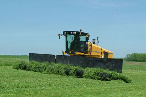 Der US-Landmaschinen-hersteller Oxbo International hat den ersten Selbstfahr-schwader der Welt vorgestellt. Zum Einsatz kommt ein 12-m-Querförderband, mit dem das Erntegut seitlich abgelegt wird.