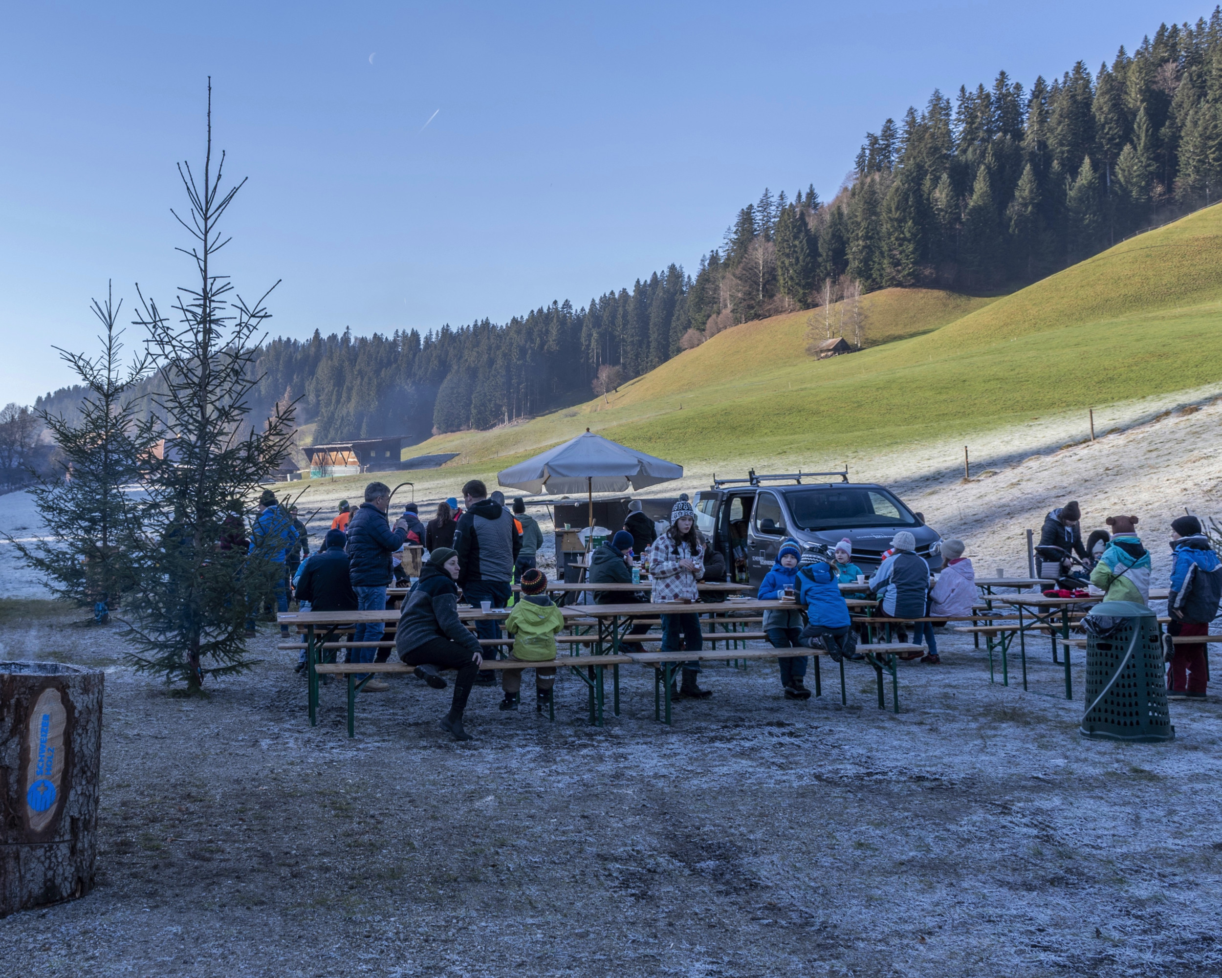 Wie schon bisher waren die Bäume gratis – eine Spendenkasse stand bereit. Dazu gab es Glühwein, Punsch und Würste vom Grill: Ein vorweihnächtlicher Anlass, der den Kontakt zwischen Waldleuten und Bevölkerung fördert. Die Rückmeldungen seien «durchwegs positiv», sagt Hans Siegenthaler. Vielen sei wichtig, «einen nachhaltigen Baum direkt aus dem Wald» zu holen – und für Kinder sei es «wirklich cool», wenn sie den Baum selber aussuchen und absägen dürfen.