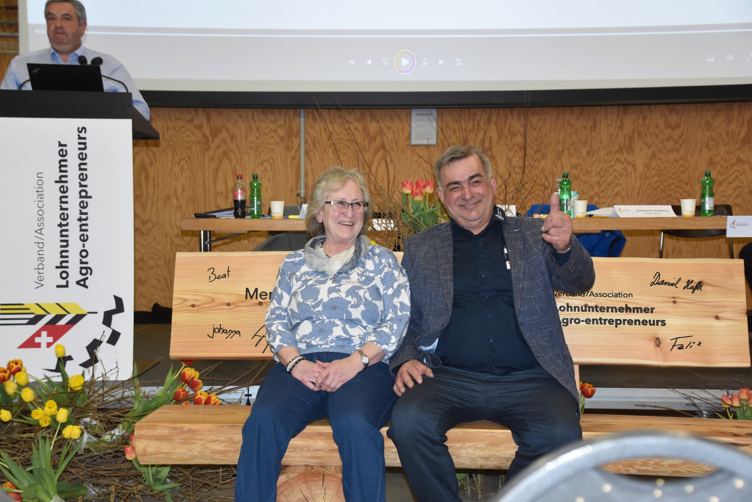 Das scheidende Vorstandsmitglied Rolf Haller erhielt Dank für seine Verdienste und wurde zum Ehrenmitglied ernannt. Neu in den Vorstand gewählt wurden die Lohnunternehmer Benny Hüsler, Rickenbach LU, und Samuel Guggisberg, Zimmerwald BE. Kirsten Müller präsentierte den neuen Imagefilm. Weiter wurden an der Versammlung mehrere Angestellte von Lohnunternehmen für ihre jahrelange Treue zu den Firmen geehrt (vgl. Kasten).