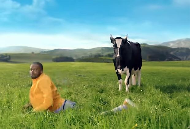 Der neue Branchenstandard ist auch Teil der neuen Werbekampagne. Lovely geniesst ihren Weidegang und beisst ins saftige Gras. Plötzlich kommt Charles Nguela ins Bild. Er tanzt und hüpft runde um die Holstein-Kuh. Doch diese bleibt schön locker und cool.