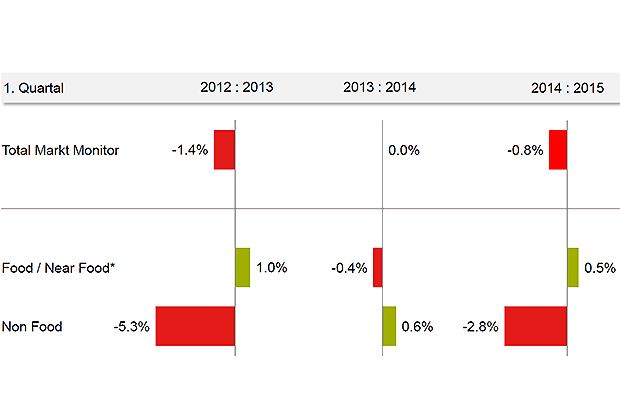 Das moderate Minus verschleiere eine sich manifestierende Entwicklungsschere, schrieb das Marktforschungsinstitut GfK zu seinem am Dienstag veröffentlichten Markt Monitor. Denn die Sparten Lebensmittel und Non Food entwickelten sich sehr unterschiedlich. In der Sparte Non Food machten sich Preissenkungen sehr stark bemerkbar. Das positive Abschneiden des Lebensmittelhandels ist gemäss GFK auf höhere Preise bei Frischprodukten und Kaffee zurückzuführen.