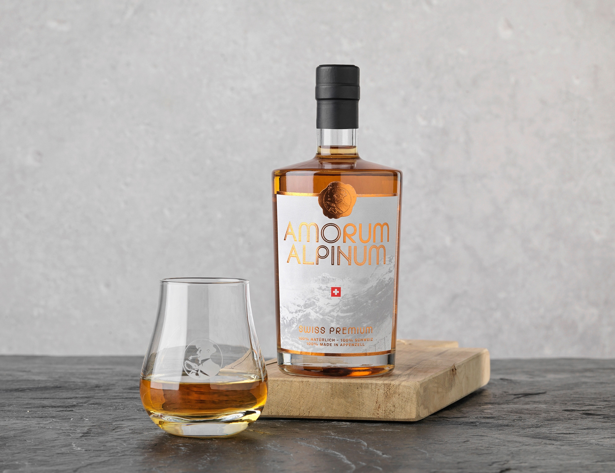 Der Name «Amorum Alpinum» ist eine Wortschöpfung: «Rum» trifft auf «Amore». Weil viel Herz drinsteckt und das Produkt zwar an Rum erinnere, aber doch anders sei, teilt die Appenzeller Alpenbitter AG mit.