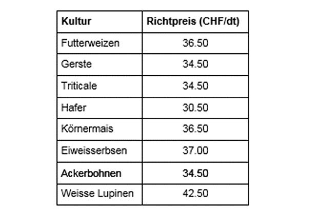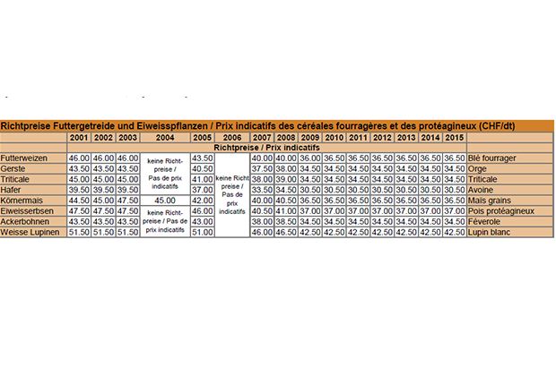 Die Kommission „Markt-Qualität Getreide“ von der Branchenorganisation Swiss Granum hat die Richtpreise für Futtergetreide und Eiweisspflanzen der Ernte 2015 festgelegt. Das Preisgefüge bleibt im Vergleich zum Vorjahr unverändert.