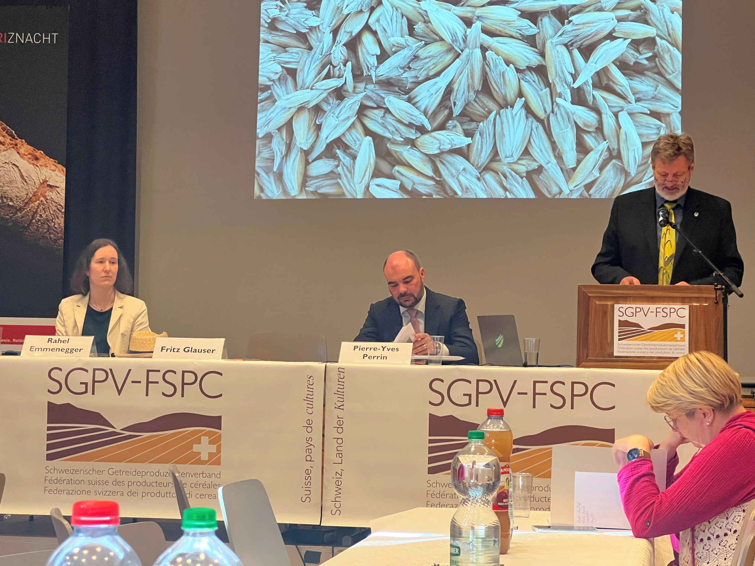 Nach der katastrophalen Ernte 2024 könne er sein Mandat als Präsident des SGPV mit positiver Note zur Ernte 2025 abschliessen, sagte Fritz Glauser zur Begrüssung der 150 Delegierten und Gäste an der Delegiertenversammlung des Schweizerischen Getreideproduzentenverbandes (SGPV) am Dienstag in Kerzers FR und nannte auch gleich die Gründe: «Stabile Preise und eine gute Qualität beim Brotgetreide, leicht steigende Preise und gute Erträge bei den Ölsaaten sowie zufriedenstellende Erträge beim Futtergetreide, falls sich die Preise nicht ändern.»