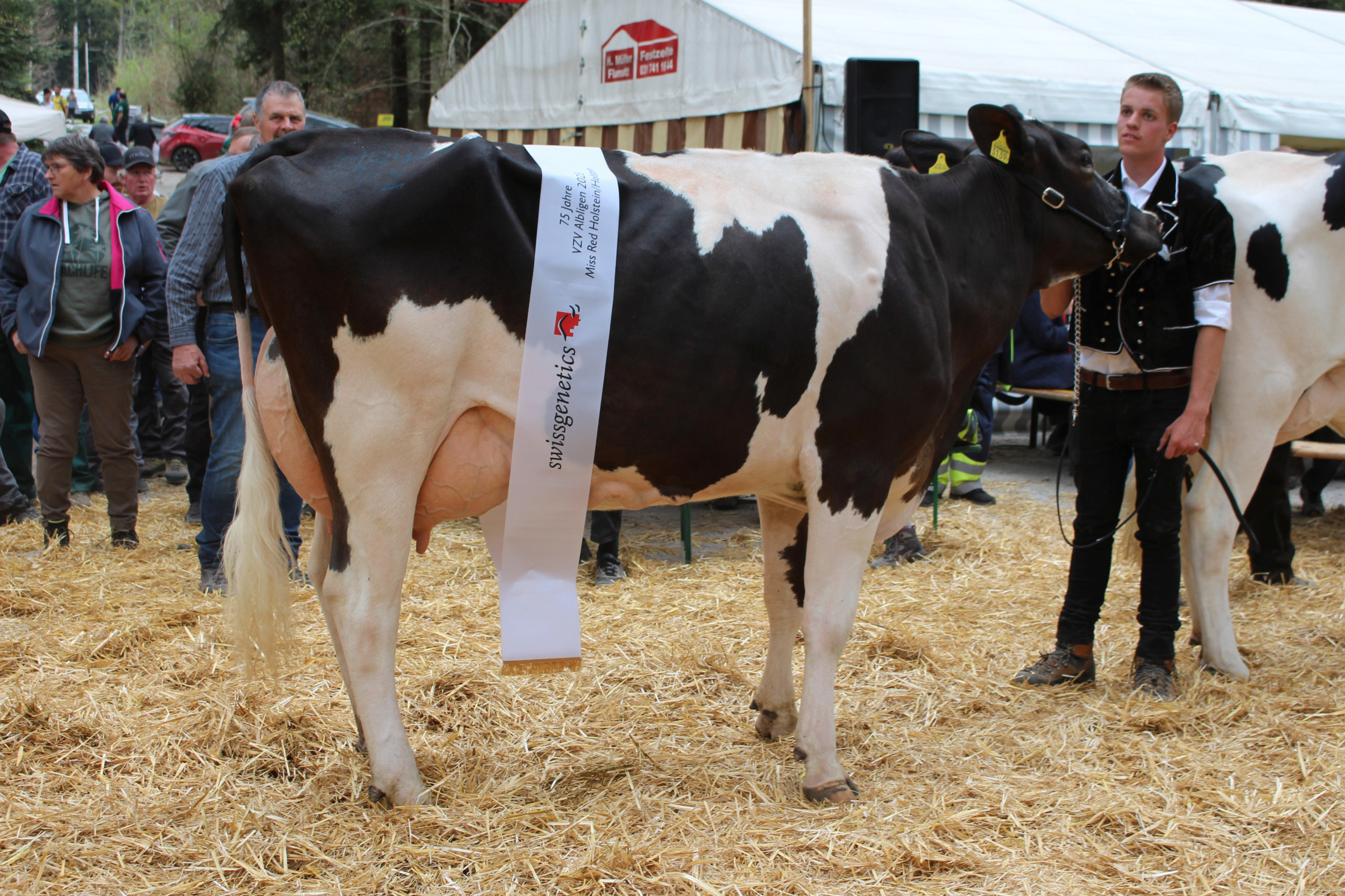 130 Tiere wurden an der 75-JahrJubiläumsschau aufgeführt: 97 Kühe, 24 Rinder und 9 Kälber. Letztere wurden von den Kindern, den zukünftigen Bäuerinnen und Bauern, vorgeführt. Bewertet wurden die Kühe von Richterobmann Daniel Wittwer, Eggiwil, dem Freiburger Sébastien Menoud und Ueli Fahrni, Rumisberg. Die Rinder stellte Sven Bigler, Mamishaus, ein. «Die Viehzuchtgenossenschaft Albligen zählt sieben Züchter. Sechs davon stellen noch Kühe aus», lässt Hans Mäder verlauten. In Albligen sei es speziell.