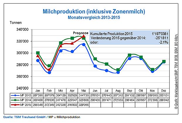Die tieferen Milcheinlieferungen haben sich jedoch bereits im Dezember 2014 abgezeichnet. Damals wurde die Vorjahresproduktion nur noch knapp (900 Tonnen) überschritten.