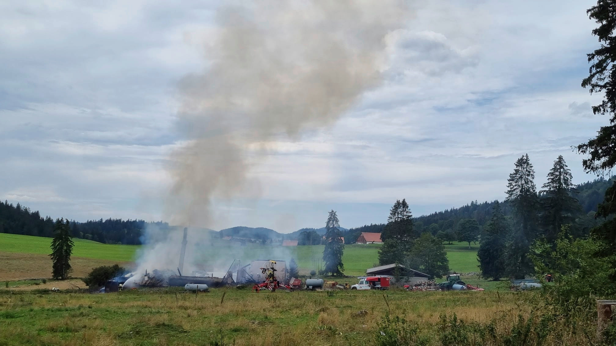 Der Landwirtschaftsbetrieb im Neuenburger Jura ist am 15. August 2023 bis auf die Grundmauern niedergebrannt. Personen und Tiere kamen nicht zu Schaden. Die Brandursache ist noch unklar.