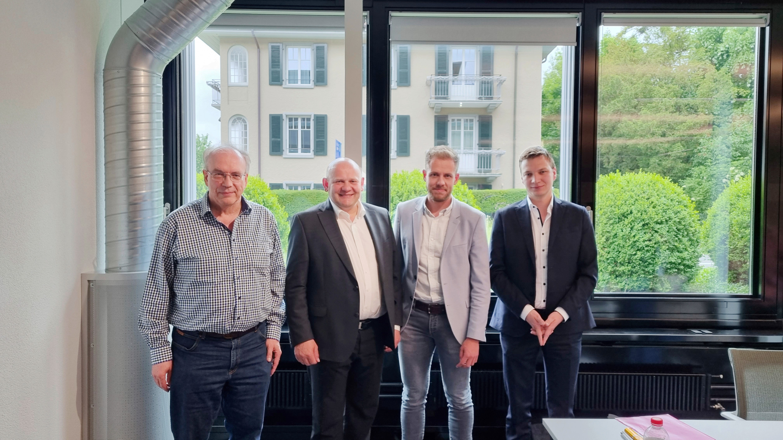 Hauptversammlung der IG öffentliche Märkte (v.l.): Sekretär Thomas Jäggi, Präsident Ernst Wandfluh, Vizepräsident François Monin und das neue Vorstandsmitglied Guillaume Kolly.