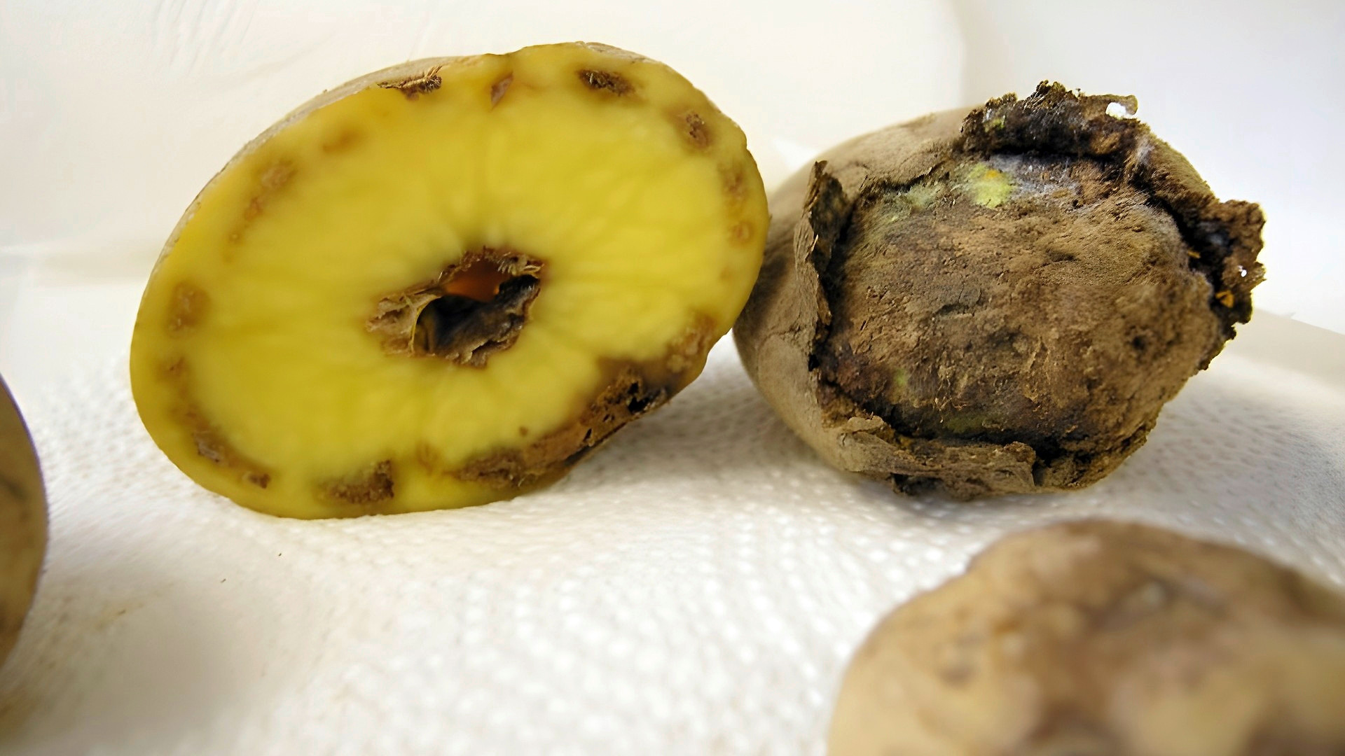 Charakteristische Braunfärbung bei Ralstonia solanacearum-Befall (Bakterienwelke) von Kartoffeln