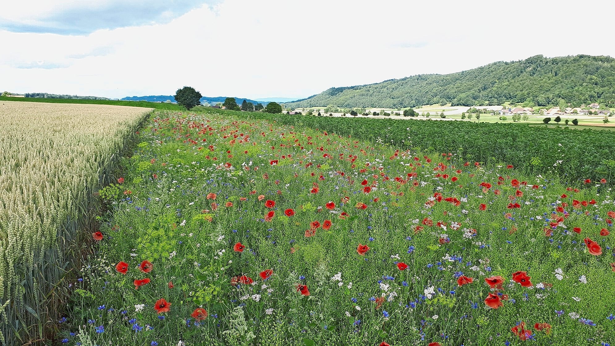 Weiter gibt es einjährige Mischungen spezifisch für Sommer- und Winterkulturen sowie eine angepasste einjährige Grundversion für die Nutzung in den Zentralalpen und an der Alpensüdflanke. Bei den mehrjährigen Versionen sind ein Nützlingsstreifen für die offene Ackerfläche, einer für Reben und einer für Obst bewilligt. Alle Firmen bieten Saatgut an. Freude an den farbenfrohen Flicken im Acker haben Produzenten, Wildbienen und Co sowie Spaziergängerinnen aber nur, wenn die Saat gedeiht.