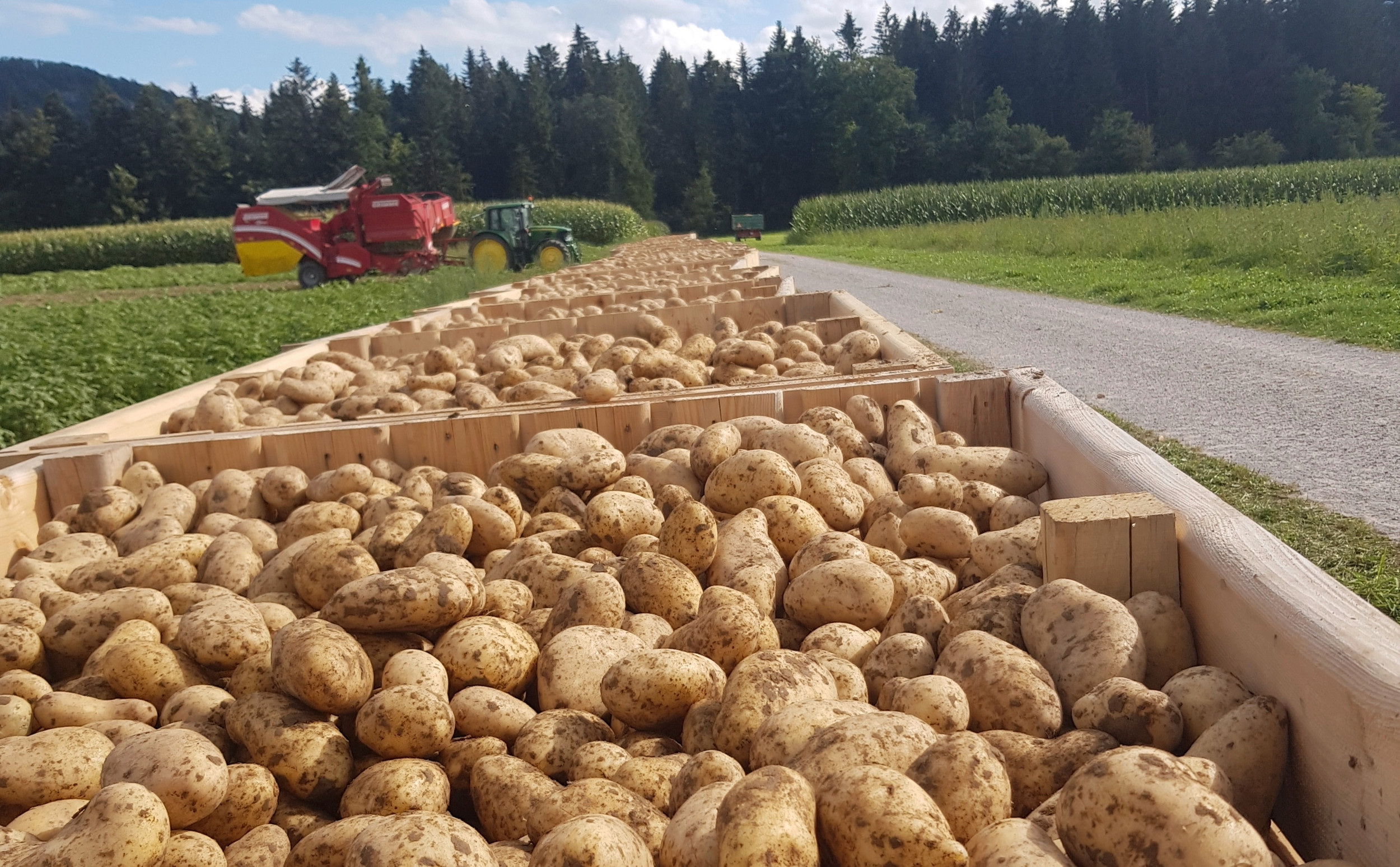 Bei einer grossen Kartoffelernte werden die überschüssigen Knollen denaturiert und an die Tiere verfüttert. Um zu beweisen, dass die Kartoffeln auch wirklich im Futtertrog landen, muss dies auf Stufe Produzent mit Fotos bezeugt werden.