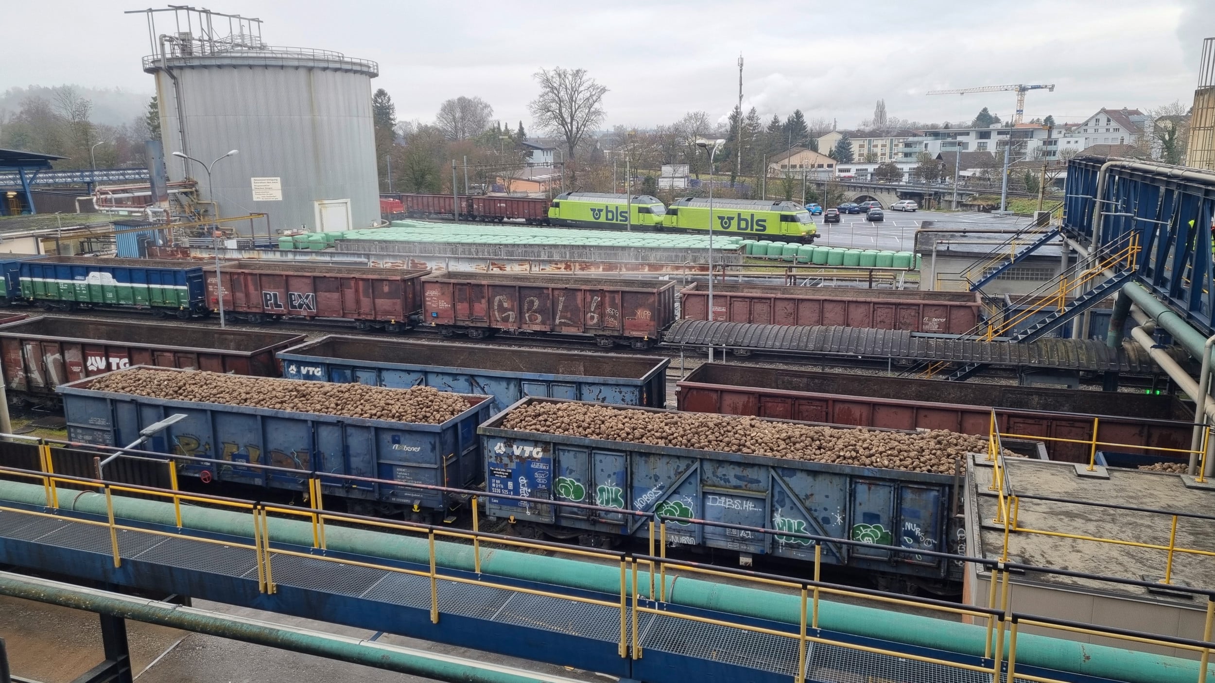 Die Rüben aus der Fabrik in Frauenfeld kommen hauptsächlich mit dem Zug nach Aarberg.