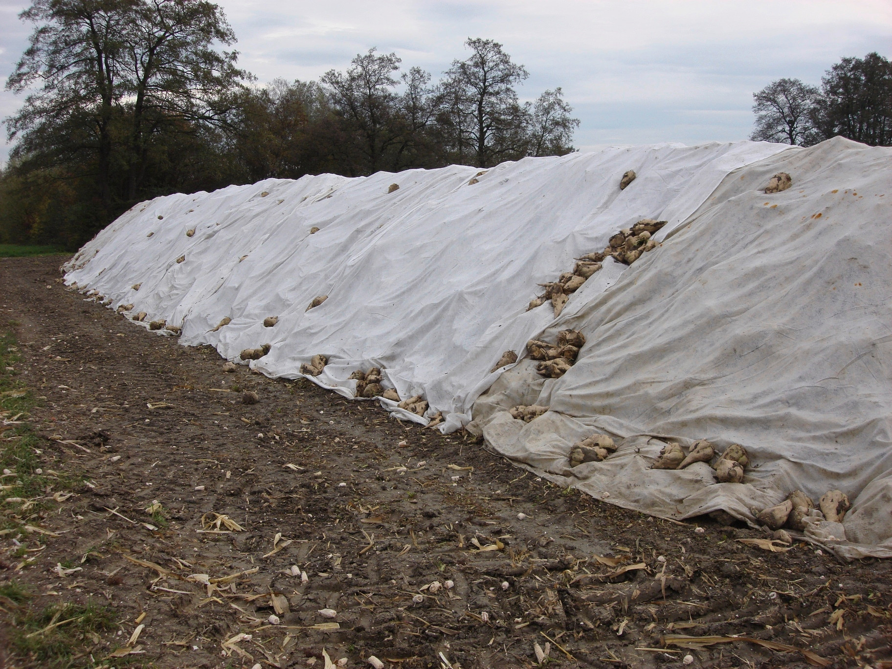 Mit dem Vlies die Rüben vor der Kälte schützen.
