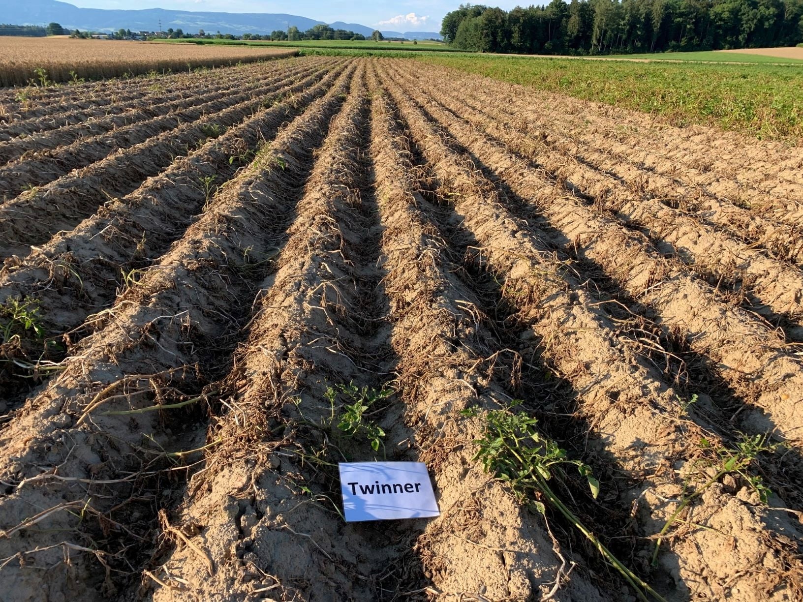 Weil die Züchtung einer neuen Sorte rund 10 Jahre dauert, werden die drei ausländischen Sorten Acoustic, Twinner und Almonda auf ihre Robustheit geprüft. Auf der Kleinparzelle lieferten die Sorten Acoustic und Twinner im vergangenen Jahr auch ohne das Spritzen von Fungiziden einen ansprechenden Ertrag, schreibt Swisspatat.