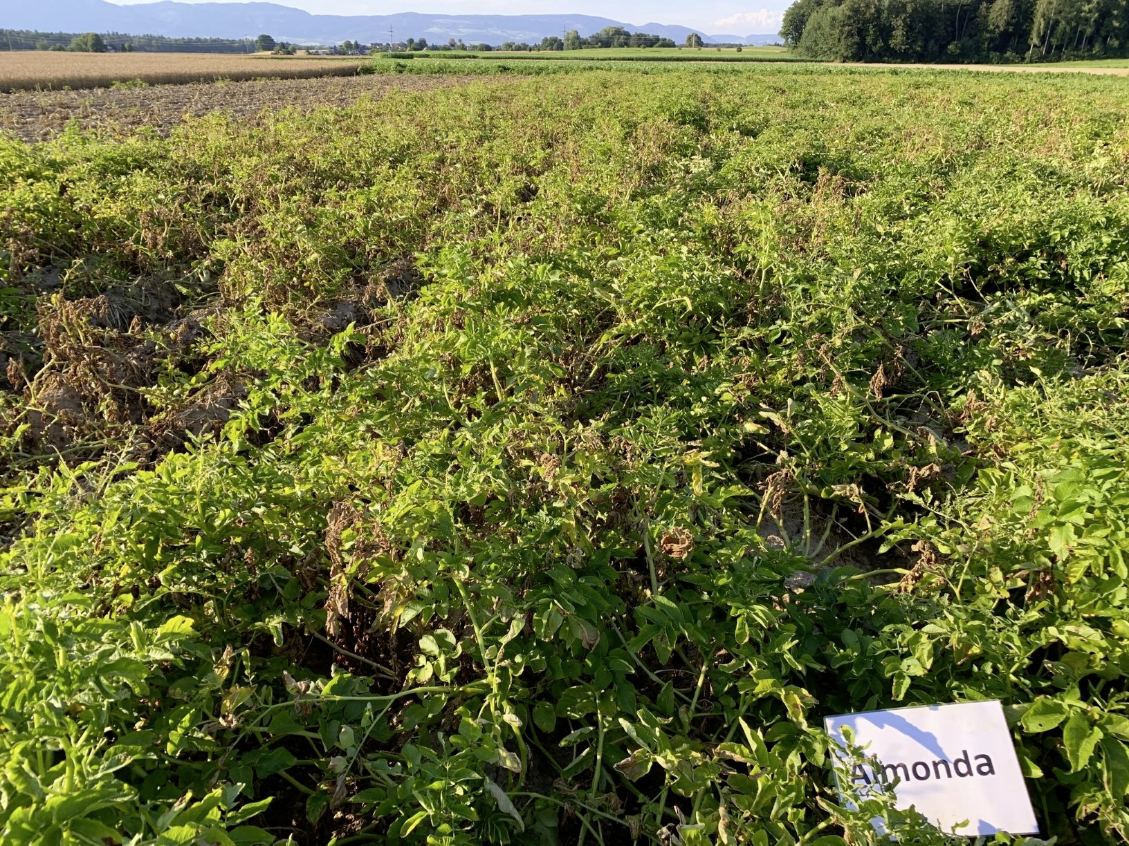 Swisspatat testet zusammen mit der landwirtschaftlichen Forschungsanstalt Agroscope und der Hochschule für Agrar-, Forst- und Lebensmittelwissenschaften HAFL verschiedene Kartoffelsorten auf ihre Anfälligkeit auf Pilzkrankheiten.
