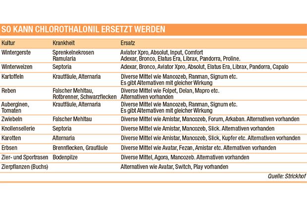 Zur Tabelle (siehe Bildstrecke) meint er: «Wenn vermerkt wurde, dass Alternativen vorhanden sind, ist das eine momentane Aussage. Sofern weitere Wirkstoffe aus verschiedenen Gründen wegfallen, steigt die Resistenzgefahr, da zu wenig Wirkstoffe zur Abwechslung der Wirkstoffgruppen zur Verfügung steht. Doch wenn es Probleme mit Metaboliten gibt, muss das BLW handeln. Die Landwirte verstehen das.»