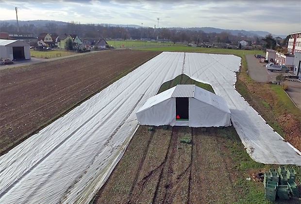 Im November läuft die Nüsslisalat-Ernte auf Hochtouren. In den Tunnels wie im Freiland sind die Mitarbeiter mit der Ernte beschäftigt. Dazu kommt auch ein mobiles Ernte-Zelt zum Einsatz. Dieses schützt die Mitarbeiter vor der Witterung. Es ist mit einer Heizung ausgestattet, eine Lichtanlage kommt ebenfalls zum Einsatz. Anschliessend wird der Nüssler gewaschen, automatisch abgepackt und an die Kunden ausgeliefert.