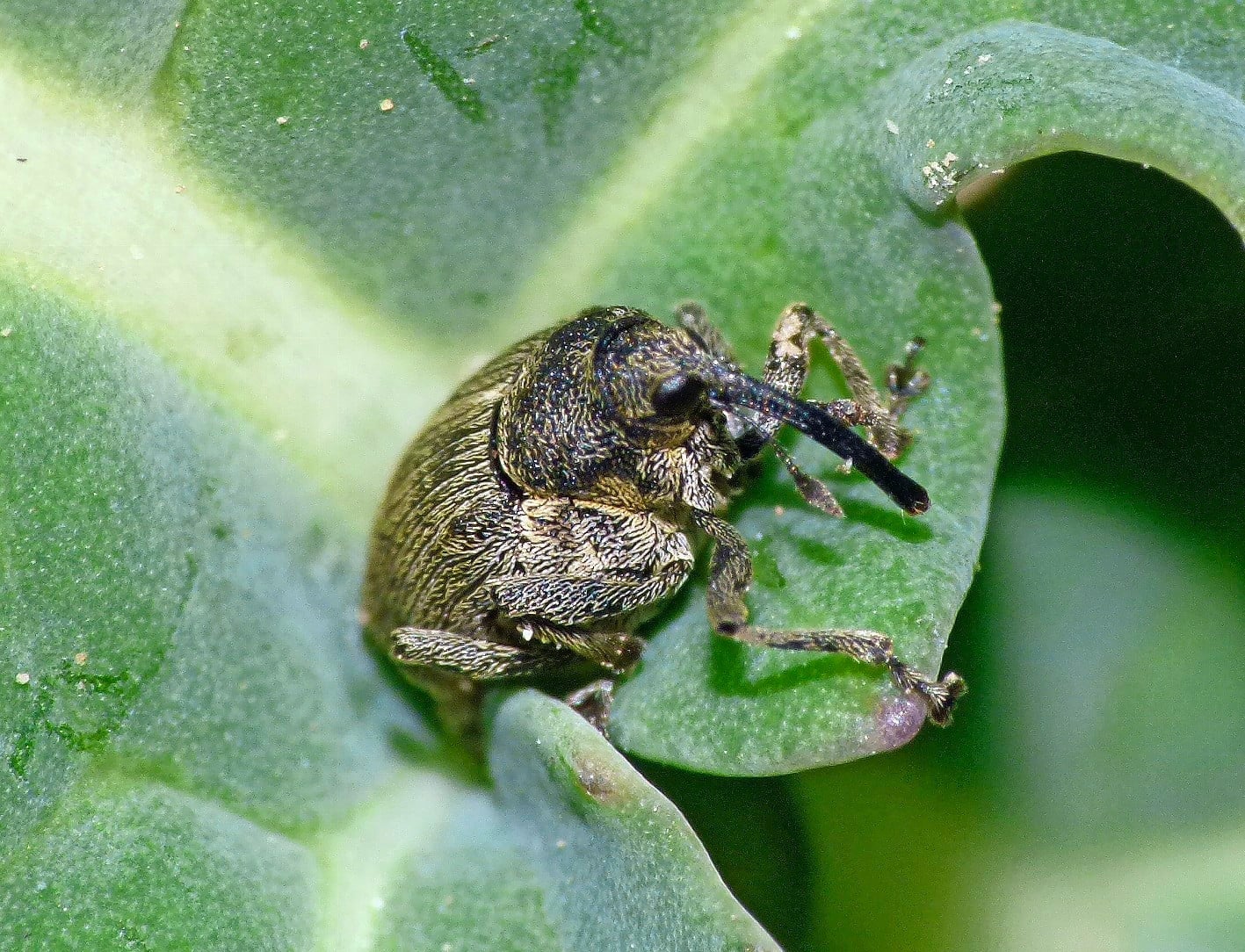 Der Rapsstängelrüssler (Ceutorhynchus napi, Ceutorhynchus quadridens) ist ca. 2,5–4 mm gross. Der Kopf ist in einen dünnen nach unten gebogenen Rüssel verlängert. Die Weibchen legen ihre Eier in die Haupttriebe, indem sie zuvor ein Loch hineinbohren.