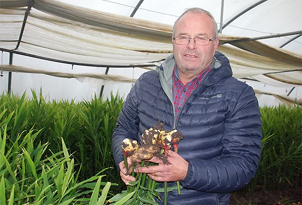 Stephan Müller baut auf seinem Familienbetrieb im zürcherischen Steinmaur Ingwer an. Da die gesunden Knollen im Anbau anspruchsvoll sind, fing er im kleinen Stil an und hat viel «gepröbelt». Mittlerweile kann er unter Mithilfe seiner insgesamt 80 Mitarbeitenden jährlich 16 bis 17 Tonnen Ingwer ernten. Dieser wird zur Hälfte frisch verkauft, zur anderen Hälfte als gepresster Direktsaft.