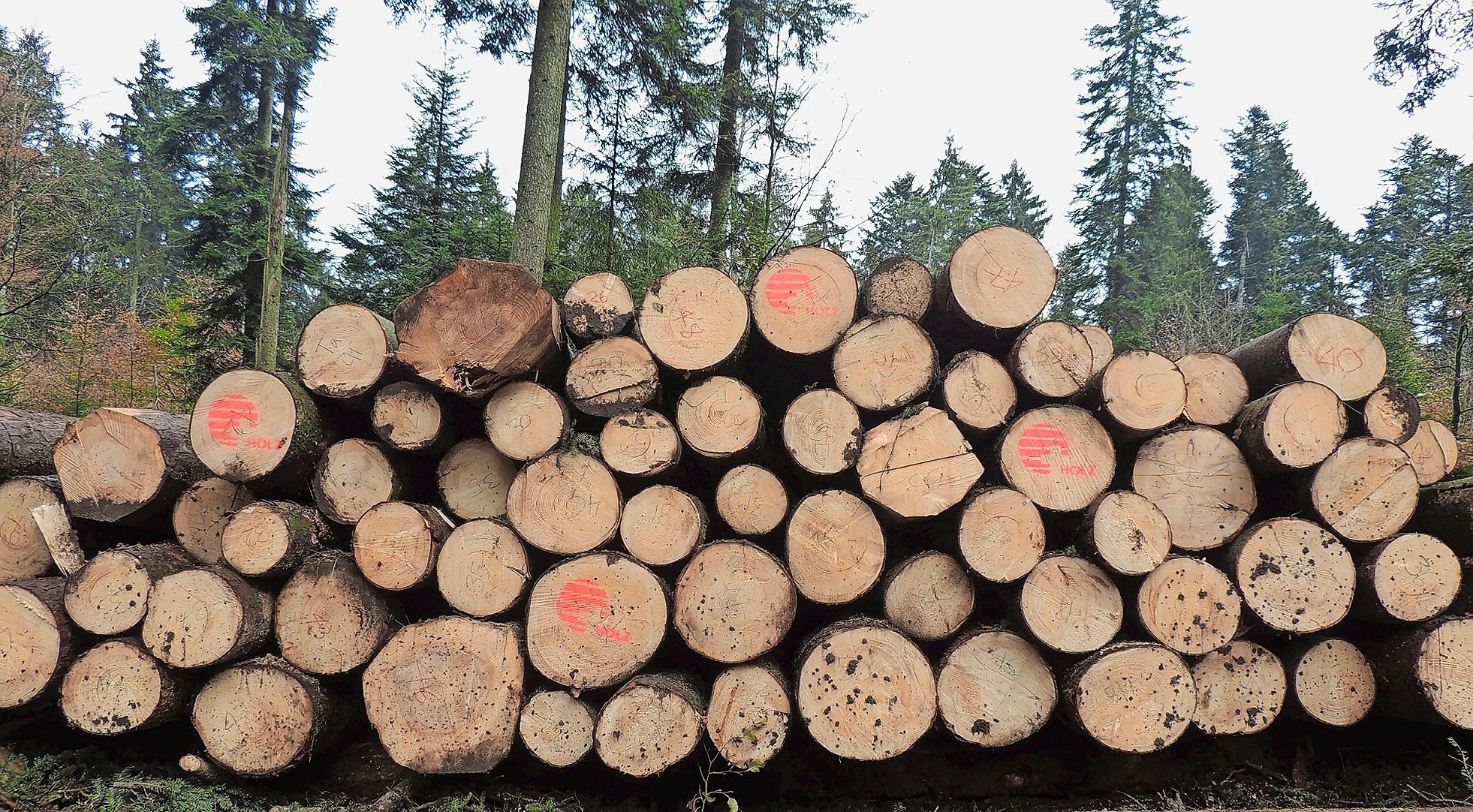 Das wirkt sich auf die Nachfrage nach Schweizer Rohholz aus. Bei Nadelholz und insbesondere bei Fichte/Tanne ist die Nachfrage hoch, sie übersteigt das Angebot. 44 Prozent der Sägereien haben einen tiefen Rundholz-Lagerbestand. Die Situation bleibt gemäss HMK in den kommenden Monaten unverändert.