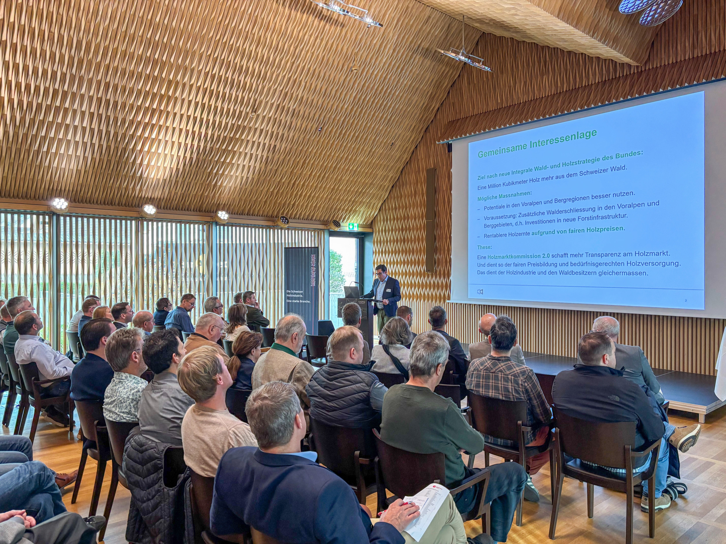 Ende November 2025 fand in Muri AG der alljährliche Holzindustriekongress statt. Es herrschte Einigkeit: Bis zum Jahr 2030 sollen jährlich eine Million Kubikmeter mehr Rohholz aus den Schweizer Wäldern geerntet werden.
