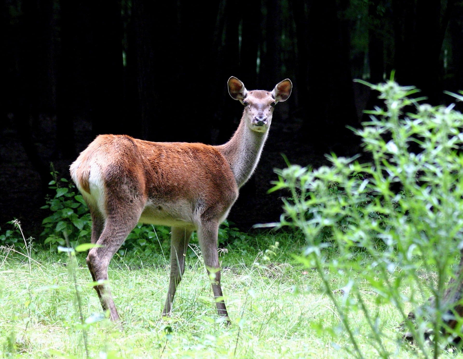 Scheue Schmaltiere fühlen sich in den naturverjüngten Flächen mit den wohlschmeckenden jungen Baumtrieben sehr wohl.