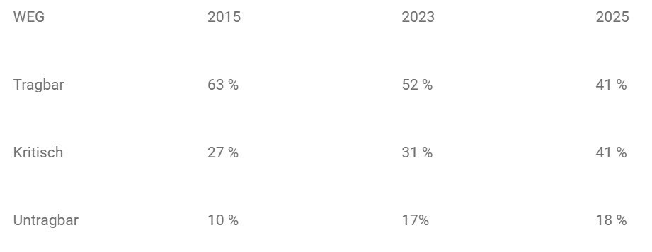 Im Wildeinflussgutachten (WEG) wird unterschieden, ob das Verjüngungsziel erreicht werden kann (tragbar), ob es unsicher ist (kritisch) oder ob es nicht erreicht werden kann (untragbar).