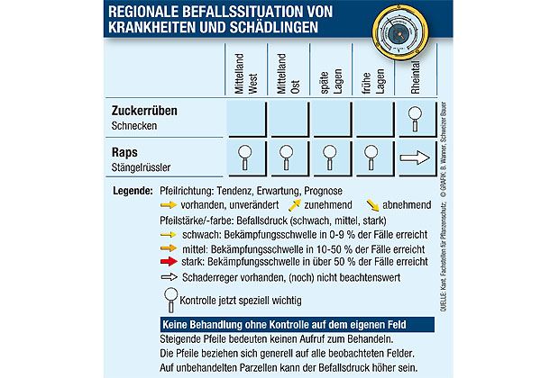 Das kalte Wetter hält weiter an. Entsprechend ist die Schädlingssituation unverändert. Regional gibt es aber Unterschiede zu beachten. So werden im Rheintal die Schnecken in den früh gesäten Rüben aktiv.