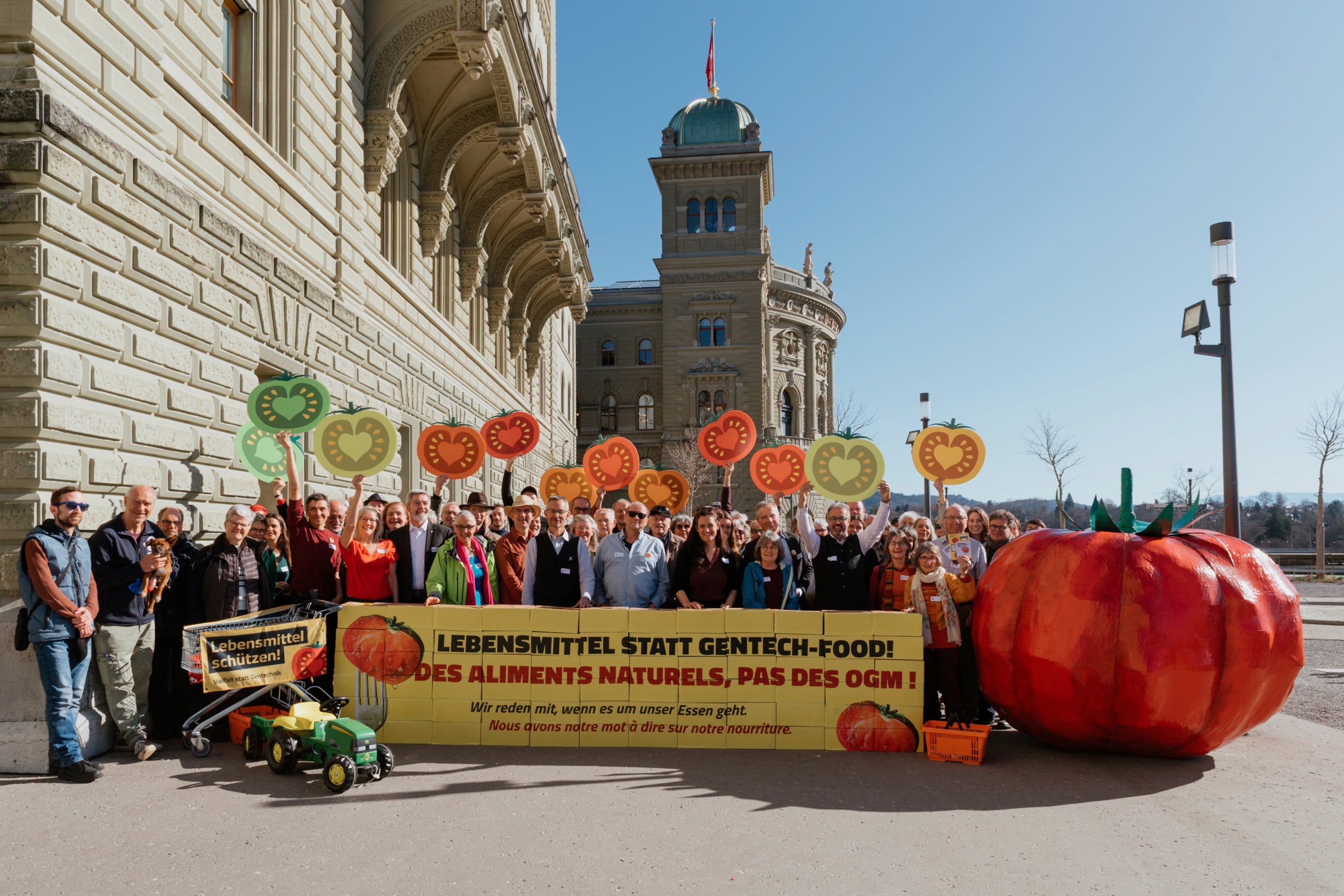 Hinter der Initiative stehen verschiedene landwirtschaftliche Organisationen, Züchterinnen, Vertreterinnen und Vertreter des Konsumenten-, Umwelt- und Tierschutzes, der Kirche, der Wissenschaft und politischer Parteien von links bis rechts. Sie alle wollen mit der Initiative die Landwirtschaft und die Konsumenten mit klaren Leitplanken vor möglichen Risiken der Gentechnik bewahren.