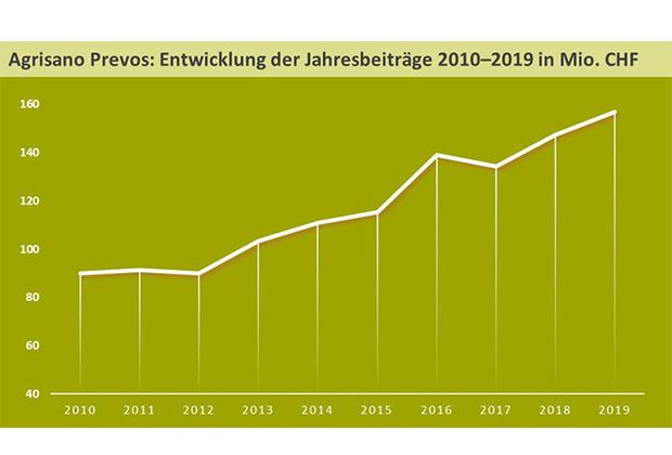 Das Beitragsvolumen von Agrisano Prevos nahm 2019 um 9,7 Mio. Franken zu und betrug 157 Millionen, wie es in einer Medienmitteilung heisst. Das Volumen lag damit um 6,6 Prozent über dem Vorjahr.