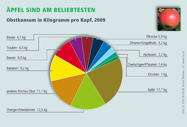 Schweizer Äpfel sind, auch wenn sie bis im Sommer gelagert werden, ökologischer als Importäpfel aus Übersee. Zu diesem Schluss kam eine Studie der ETH Zürich aus dem Jahr 2009. So verursache die Lagerung von einem Kilo Schweizer Äpfel bis Ende Juli maximal 0,35 kg CO2, während dieselbe Menge Neuseeländer Äpfel im besten Fall – direkt nach der Ernte und ohne Lagerung – auf rund 0,5 kg CO2 kommen.