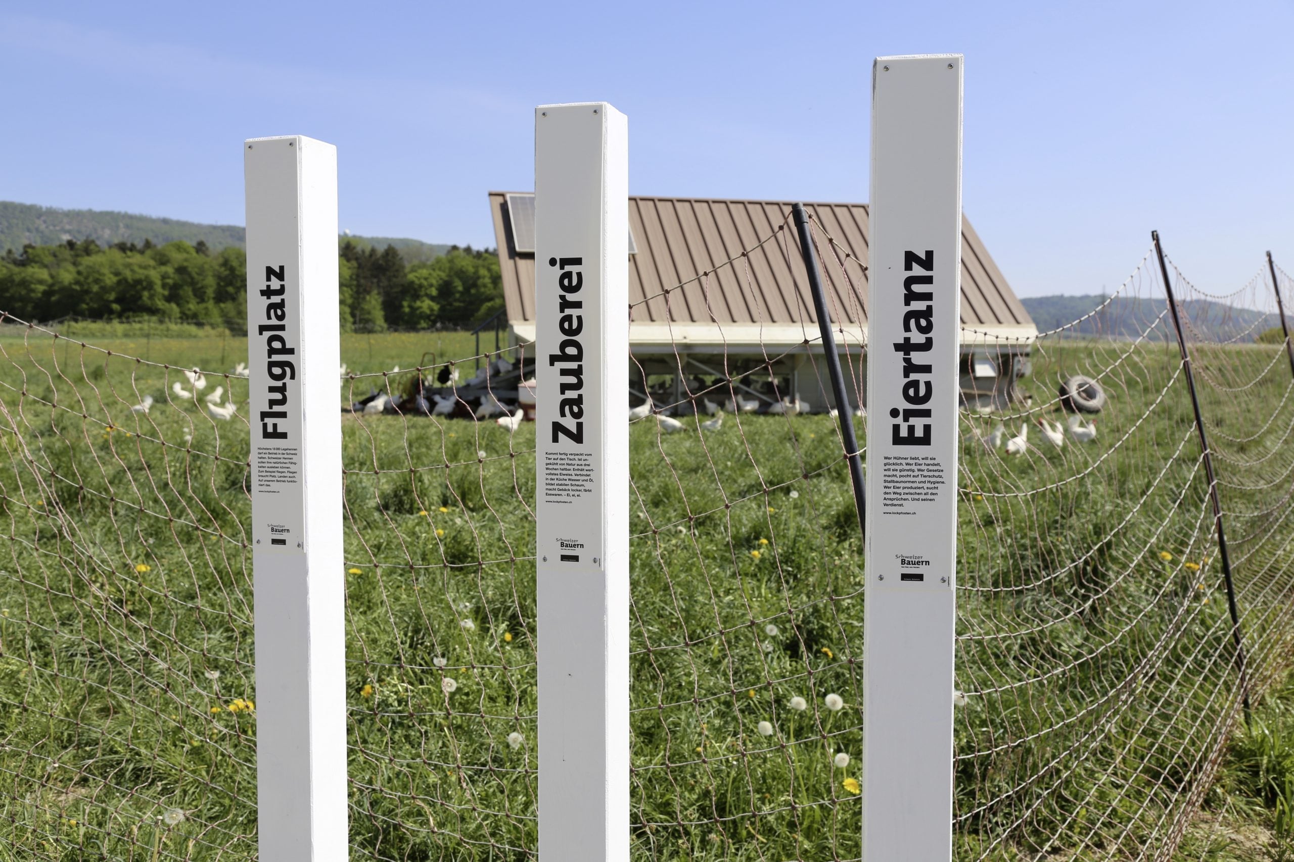 Beim nationalen Projekt der «Schweizer Bauern. Von hier, von Herzen.» wählt jeder teilnehmende Betrieb jeweils vier bis acht passende Themen für sich aus – zu jedem Thema geben dann drei bis sechs Lockpfosten Auskunft, die von Mai bis Oktober in der Nähe von Fuss-, Wander- oder Fahrradwegen stehen.