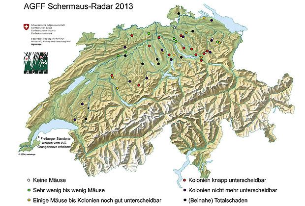 Je mehr Mäuse auf der Fläche leben, desto grösser werden die Schäden. Bei 200 bis 500 Mäusen pro Hektare ist die Hälfte der Fläche nicht mehr bewachsen, der Ertragsausfall beläuft sich auf bis zu 70 Prozent. Fällig wird eine Neuansaat, das heisst für den Bauern oder den Lohnunternehmer pflügen, eggen, säen und Säuberungsschnitt durchführen. Der Schaden: 1890 Franken pro Hektare.
