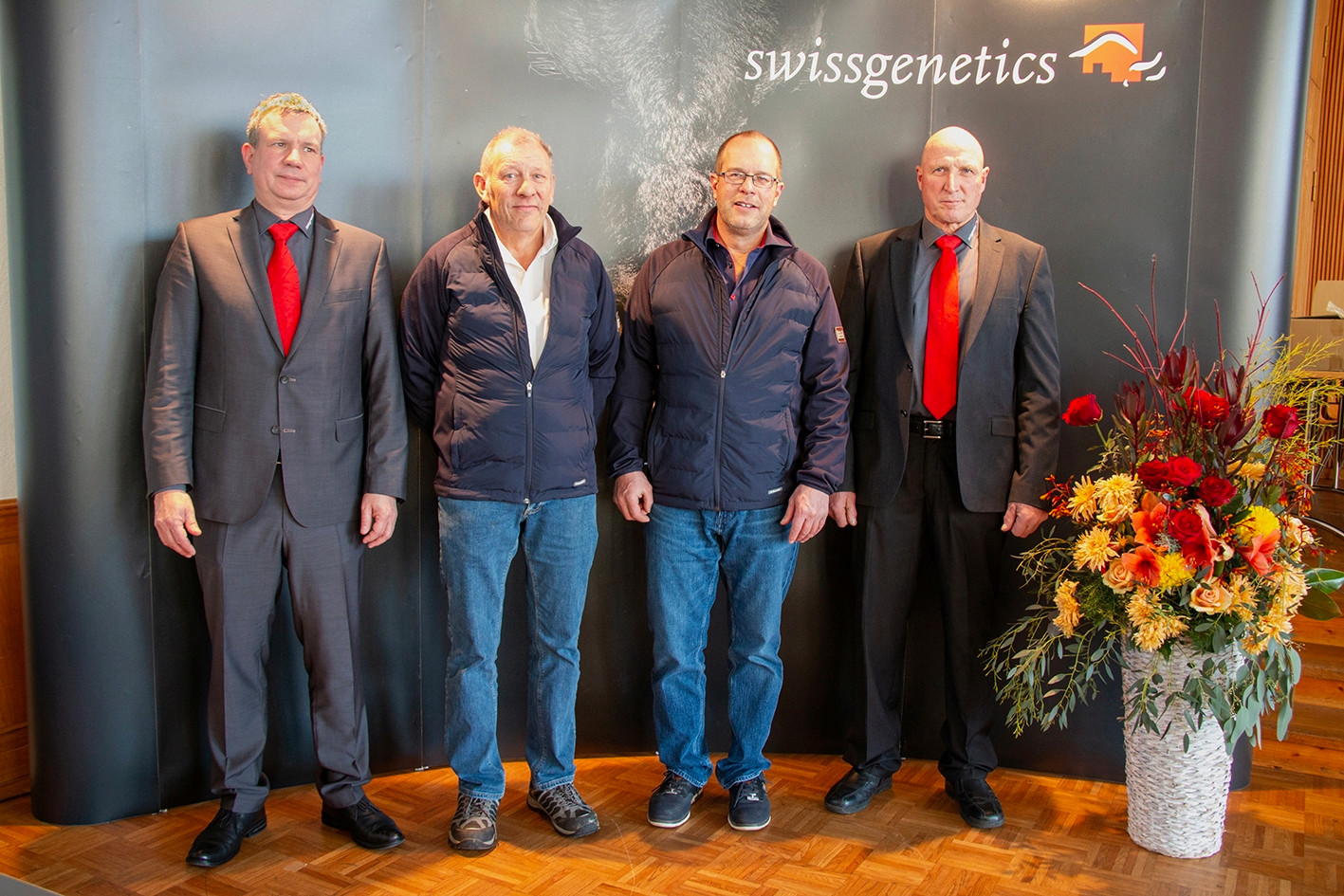 Die neu gewählten Vorstandsmitglieder Heinz Baur (2.v.l.) und Cédric Pradervand (2.v.r.), flankiert von Direktor Matthias Schelling (links) und Präsident Ueli Bach (rechts).