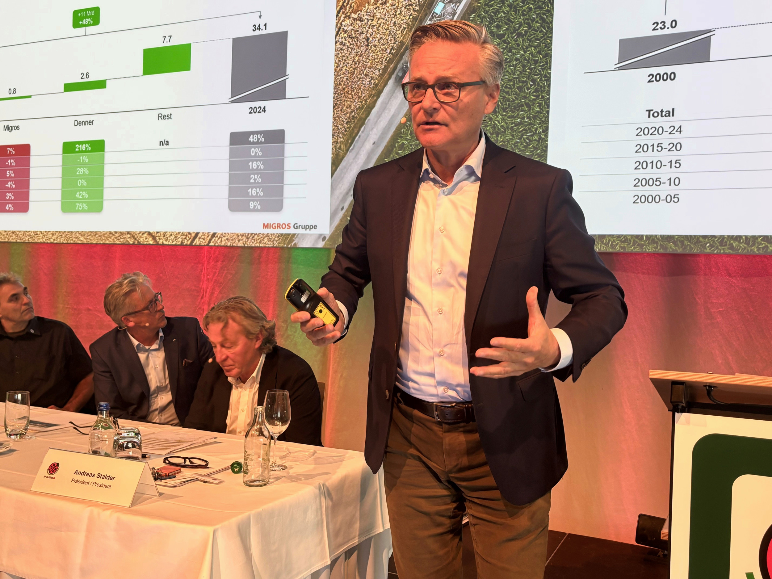 Bereits in seiner Eröffnungsrede fand IP-Suisse-Präsident Andreas Stalder nachdenkliche Töne. Die Konsumentinnen und Konsumenten seien heute kaum mehr bereit, den Preis zu zahlen, den die Natur eigentlich fordere, sagte er. Damit beschrieb er die schwierige Marktsituation für Labelprodukte und zeigte Verständnis dafür, dass der Detailhandel angesichts des Preisdrucks die Nachhaltigkeit nicht immer an erste Stelle setzen könne.
