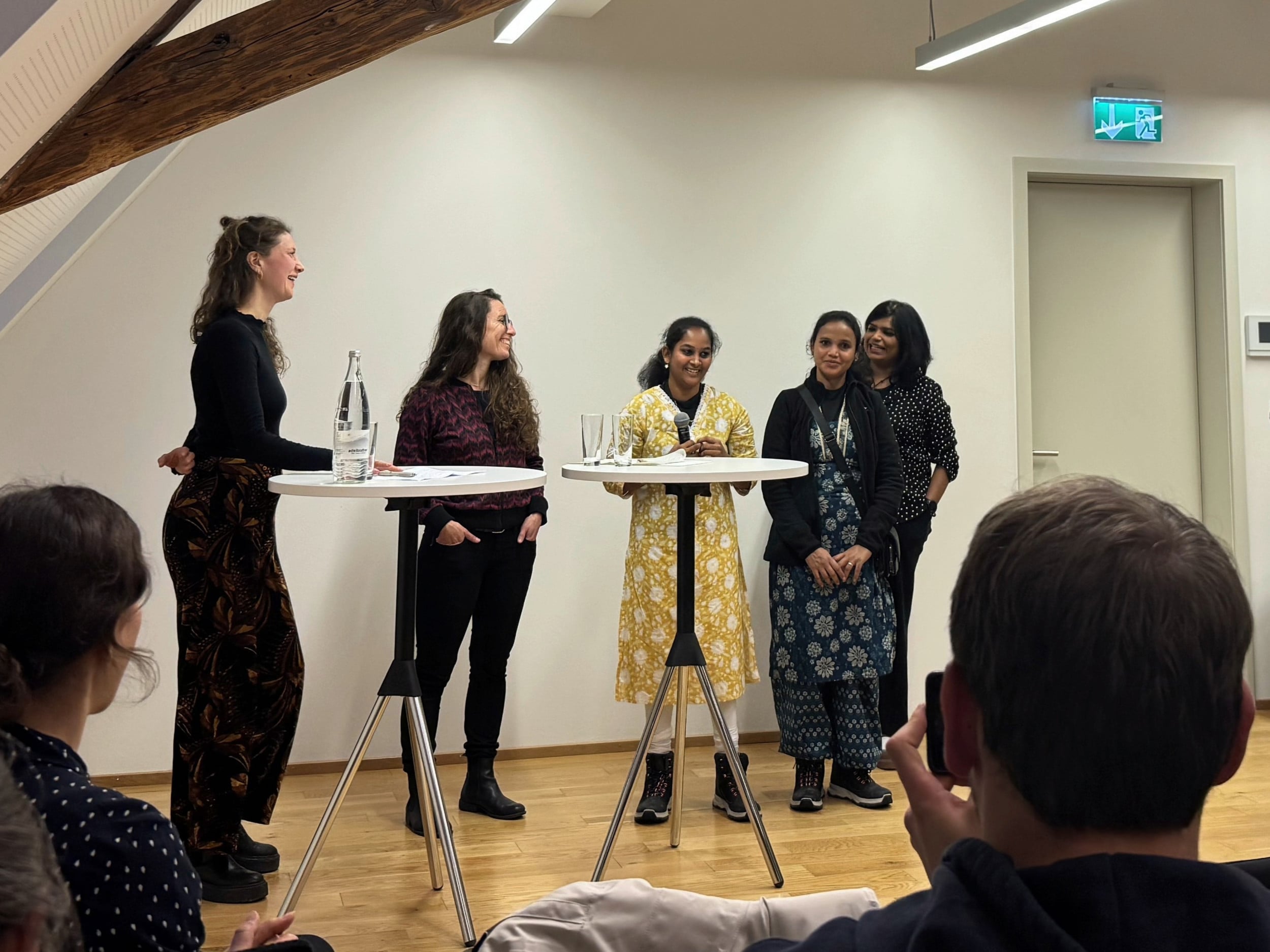 Tamina Felder, Johanna Herrigel, Jyothi Bobbili, Arika Narasamma und Swati Renduchintala tauschten sich über die Rolle der Frauen in der Landwirtschaft aus.