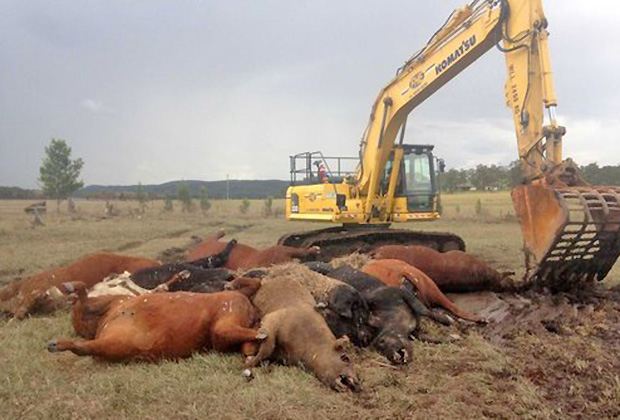 Bisher konnten rund 200 tote Rinder und Pferde abtransportiert werden. Da aber viele Gebiete nach wie vor unter Wasser stehen oder nicht erreicht werden können, verwesen zahlreiche Tiere noch auf dem Land.
