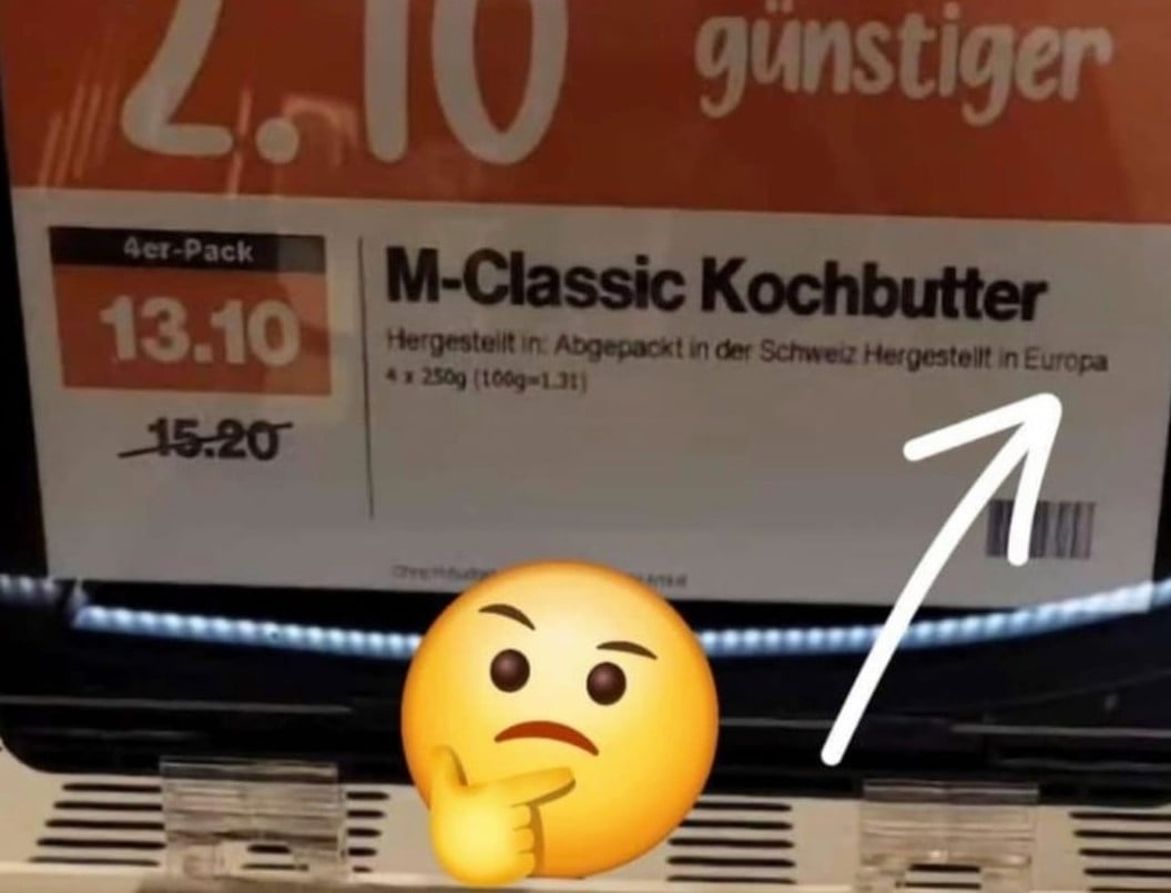 Abgepackt sei die Kochbutter in der Schweiz, hergestellt in Europa, steht bei einer Anschrift im Laden. Der «Schweizer Bauer» fragte bei der Migros an, welche Mengen an Importbutter im Zusammenhang mit dieser Aktion trotz Milchschwemme in der Schweiz vermarktet würden.