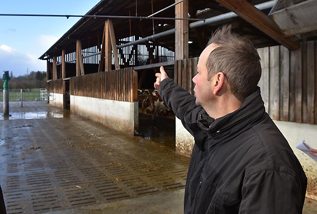 Dann zeigte er den Medienvertretern den Boxenlaufstall für 50 Kühe und betonte: «Die Gummimatten sind wichtig fürs Tierwohl. Das ist viel besser als Beton, diese kostete uns aber 20'000 Franken.» Oder die zwei grossen Lüfter: Auch diese hätten 10'000 Franken gekostet. Auch die Tierdusche führe dazu, dass sich die Tiere an heissen Sommertagen wohler fühlten.