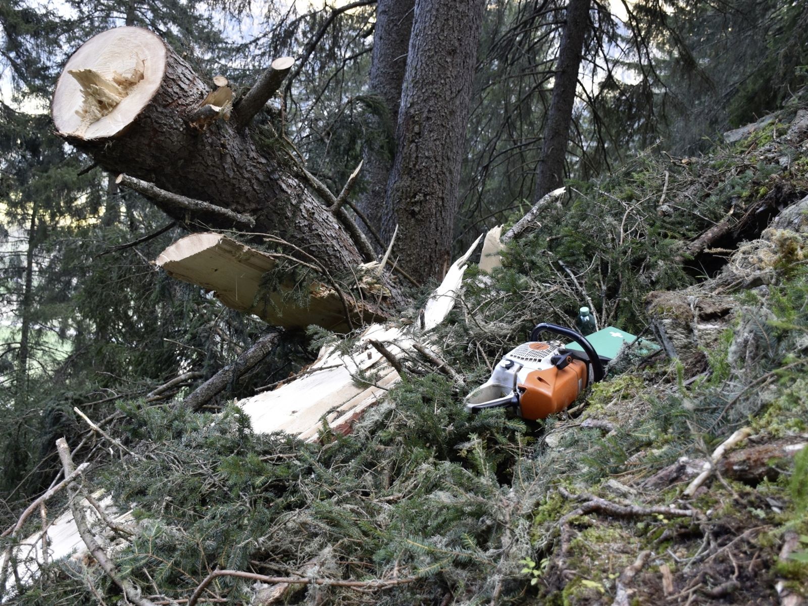 Der Schweizer aus dem Kanton Bern geriet nach Polizeiangaben in unwegsamem Gelände unter den Stamm eines Baumes.