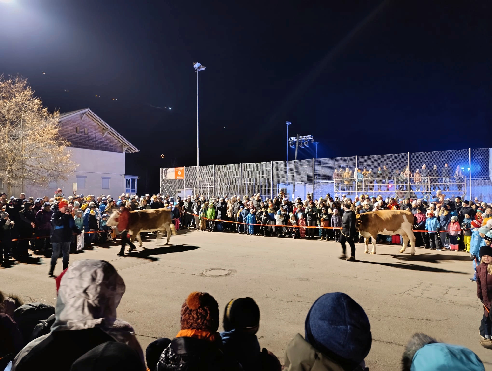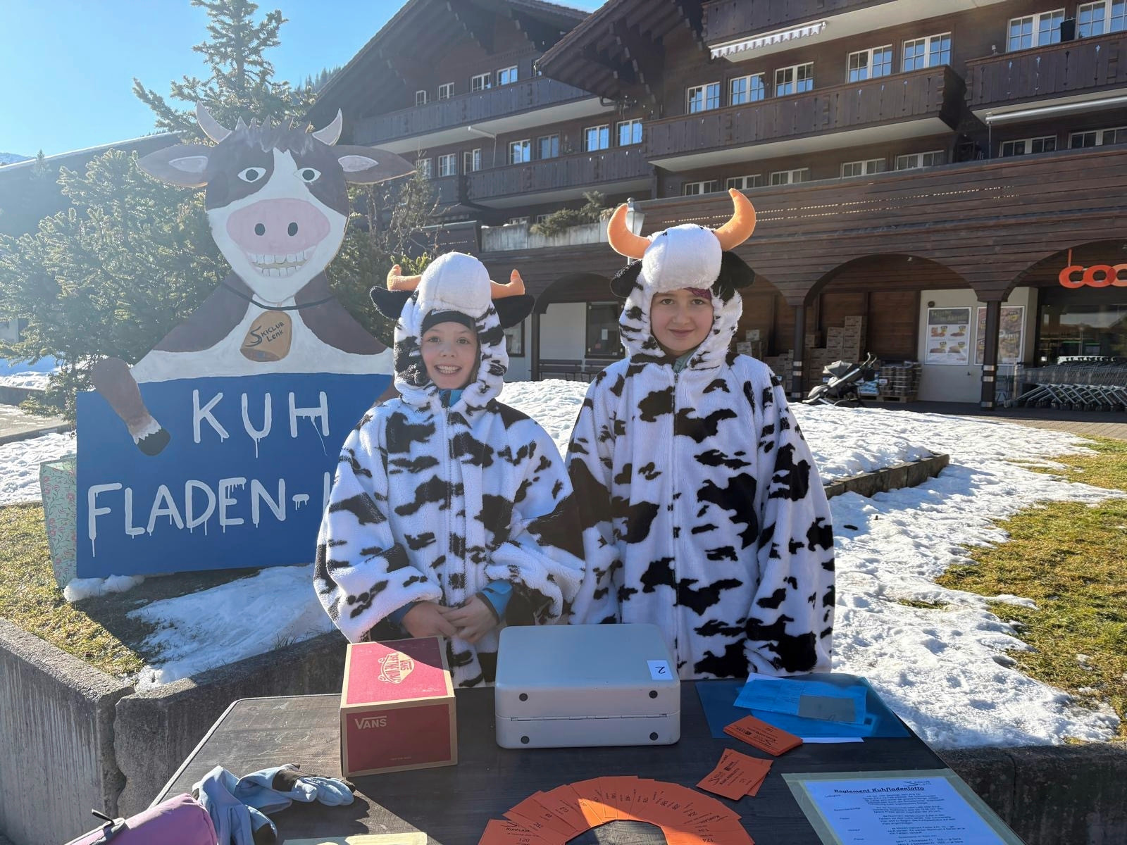Austragungsort des Kuhfladen-Lottos war die Arena zwischen Tipi Bar und Alphüttli Bar in Lenk BE. Im Mittelpunkt standen die beiden reinen Simmentaler Kühe Alexija und Merry, teilt der Skiclub Lenk mit.
